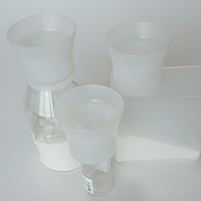 入浴剤など、粉状のものの詰め替えにお使いいただける上合(じょうご)をつくりました。各種の詰め替え容器に対応できます。素材はポリプロピレンです。