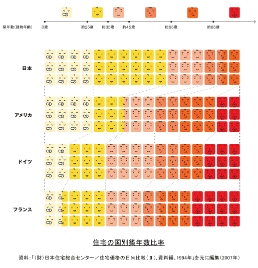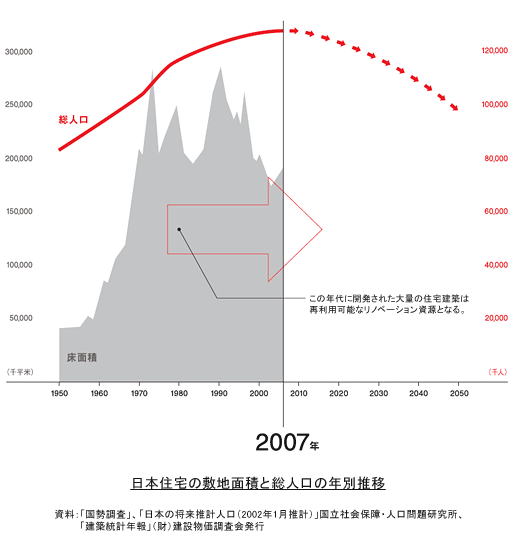 僕の父も「こういうふうに家をつくりなさい」とは教えてくれなかった。学校の先生もそうです。なぜなら、この五十年ほどで、日本はコミュニティーのかたちも、家族のかたちも、コミュニケーションの方法も激変したからです。直系の大家族がいっしょに住んで、土間で作業をしたり、そういう生活だったんですよ、ついふた世代前までは。だけど、この50年で完璧に変わっちゃいましたね。昔は蜜柑が田舎から送られてくると、隣近所にお裾分けにいったりしましたけど、最近はお隣りさんとも会いません。だから、どうやって家をしつらえたらいいかなんて、親は子に教えられないし、学校でも教えられない。知恵が社会の中に蓄積されていないんです。