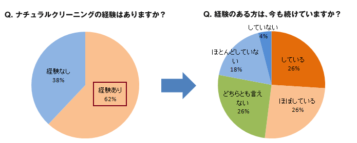 ところが、ナチュラルクリーニングの経験ある人の約半数が、いつの間にかナチュラルクリーニングを止めていることがわかりました。