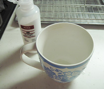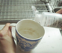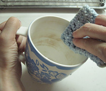 目の粗いスポンジなどで、茶渋をこすります。
