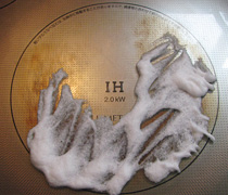Nさん- ガラストップにこびり付いた汚れを、石けんと重曹ぺ―ストで落としました。根気はいりましたが、ちゃんと落ちました。