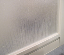 浴室の扉もけっこう水垢があります。