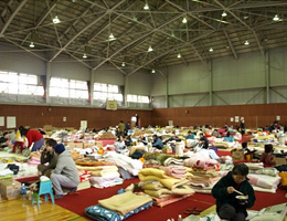 一方、地域の温泉旅館では、この事態を重く見て、震災翌日には自主的な受け入れを始めました。この旅館(くつろぎ塾/代表者:深田智之氏/定員:800人。この旅館の取り組みは次回の記事でご報告します)は自主的に、なんと1360人の被災者を自費で受け入れたのです。まだ県が受け入れの発表をする前のことです。14日(月曜)には、1万人を受け入れることに決まり、高校・中学校・小学校・市の体育館などでも受け入れが始まりますが、その対応が落ち着くまでの混乱の期間を、本田氏は地域の人や行政と連携して支援を続けていったのです。