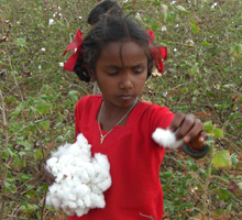 コットンを摘む女の子