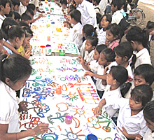 鳥居さん: その通りですね。40か国以上の国で、いろいろな子どもたちに会いました。チェルノブイリの原発事故直後の無表情な子どもたち、アフリカの飢餓に苦しむ子どもたち・・・。カンボジアでは、エイズが原因で我慢のできない痛みを抱え、地面に頭をつけてコマのようにクルクルと回り続ける子どもに出会いました。内戦中のボスニアで、戦闘に巻き込まれて頭部の一部を失う重傷を負った子が、私に向かって一生懸命微笑み返そうとしたのも忘れられません。大人の作り出した不条理の、一番の犠牲になるのは子どもたちです。目の当たりにすることは、私たちにとっても胸が張り裂けそうな体験です。けれど、わかったのは、どんな子どもたちも、表現することで、自分に向き合い、理解して受け止めようとするのだということです。子どもたちの持つ力が偉大なのは、国や文化、境遇が異なっても変わりません。