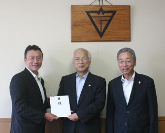 左:執行役員鈴木、中央:井口市長、右:菊池社長