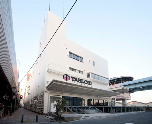 これタブロイドといって、浜松町にあるリノベーションの事例です。これは産経新聞の工場だったんですね。5年間ぐらい使われていなかった。ここで新聞を印刷しなくなって、このでかい空間がどうしようもなく使えずに、手をこまねいて5年間空き物件で経過していた。日の出駅からおりてすぐの高速道路側のビルで、普通の人もエントランスなんか入れるので、興味のある方はぜひ行ってほしいです。