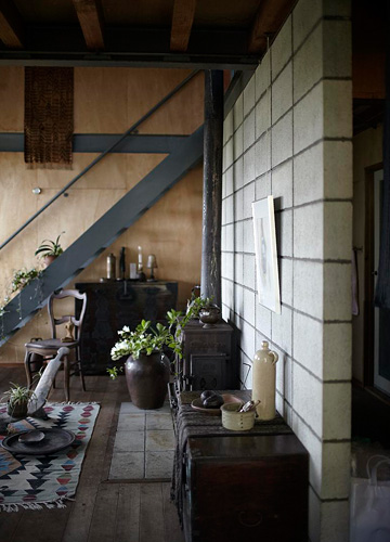 住み手、画家のIさんという方の住み方がすごく惹かれるものがあります。当時はブランド物のイタリアン家具とかがすごくはやりの時代だったんですけれども、このお宅を訪ねたときに、そういうものが1つもなくて、でもとても美しいというか、気持ちがいい、何か忘れられない。1つ1つ家具も彼がちょっとパリで暮らしていたときの安い、のみ市で買ったものだったり、無名のものなんですが、本当に私はこういう暮らしが一番好きだなと思いました。それで実は『住む。』の創刊号のときにも、ここでご紹介したいと思い頼んだのですが、何かちょうど外壁を塗っているところで、「嫌だよ」とか言われて、それでまた何度か、もう追っかけのようにお願いしたのですが、このとき初めて、「そこまで言うなら負けたよ」とかと言ってくれて、訪ねた家です。