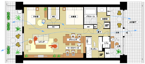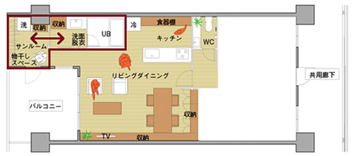 これはバルコニーについて、「バルコニーを半分にして、サンルームみたいのがあったらどうでしょう」と。洗濯物を部屋の中で干す人がすごく多いんです。なので、サンルーム兼洗濯室といったものをバルコニー側に持ってきて、ここで干したらどうですかと。これは結構評判がよかったです。でも、「南側の明るいところに洗濯室を置くのはどうかな」というご意見もありました。