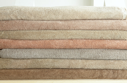 皆さんも見ていただくとわかりますが、手前は普通だったら捨てられてしまうようなバラから煮出した色。そして向こうは椰子の実です。椰子の実であんなにきれいな赤みのあるベージュが染まります。自然のこういうものからこういう優しい色合いの色が生まれ、それをふだん使いで皆さんに使っていただけるということは、僕はすごいうれしいと思うし、これからタオルだけじゃなくて寝装とか衣料品とか。私は、本当にクォリティーの高い自然の染料で、少々洗っても落ちないような、たとえばTシャツ、それを普通の値段で出していってほしい。実は私は今回も無印の方たちに、絶対値段を高くしないでほしいとお願いしました。ふだんみんながそういうものが買える、使える、そういう環境をつくりだすこと、私はそれも新しい伝統だと理解しています。