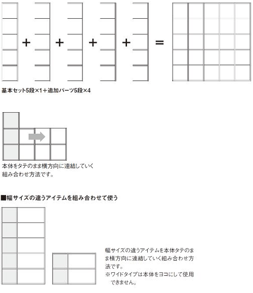 スタッキングシェルフは、実は上から下までレギュラーかワイドか、どちらかで揃える必要があります。そもそもの仕組みからきちんと説明しないといけない、ということに気付きました。