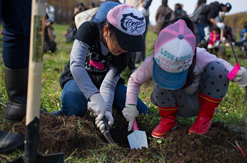 一方で、2012年からは東川町にある「君の椅子の森」に苗を植える活動も行われています。椅子を贈られた家族が集い、ミズナラ、シラカバ、ヤチダモといった広葉樹の苗を植樹。椅子になるには50~80年もの歳月が必用ですが、苗を植える小さな手が成長しその手にやがてシワが刻まれていくように、森の木々もゆっくりと年輪を重ねてくれることでしょう。