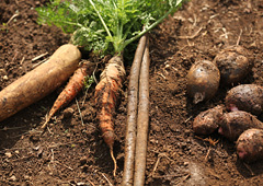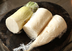 在欧洲因长得像树根而被敬而远之的牛蒡,最近法国菜和意大利菜中也开始使用。另一方面,在日本家庭料理中"少有根菜"难道是"费时费力"的缘故吗?数年后,在轻井泽的别墅里生活的水上勉先生在招待冬天的客人时,用大锅制作了炖煮萝卜、胡萝卜、牛蒡、芋头等根菜的无名汤。文章中对这段描写成"芋头等不焯水。渗出粘液也无妨。是自然勾结的乱舞",好像看到了在家里使用根菜时的秘诀。