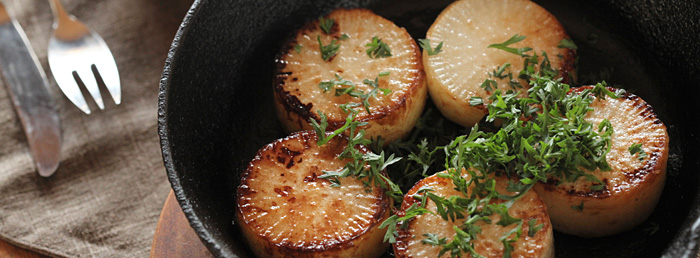 根菜的魅力在于嚼劲和风味,但能否有效利用就要看怎么利用菜皮了。因为很多根菜的皮和肉之间含有美味和香味。