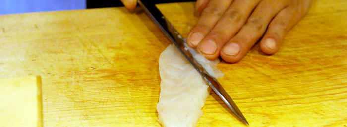 由于结构上的差异,所以西方的多数刀具都需要用力"压切"。而另一方面,日本的"拉切"及"削切"等各种刀功技术都得到了发展。此外,日本还会根据食材及烹饪法的不同更换菜刀,蔬菜用切菜刀,鱼类用厚刃尖菜刀,而生鱼片则用柳叶形菜刀。日式菜刀中还融入了追求切口美观的日本人特有的审美意识。