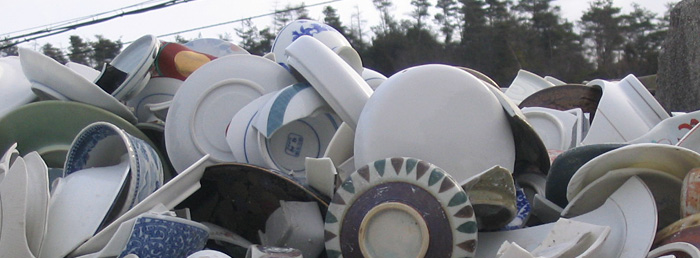 于是顺利开始了生产,不过也存在问题。那就是收集废弃陶瓷餐具的方法。到目前为止,采取由地方政府的行政部门回收为主的机制,由此产生的成本也由地方政府承担。换句话说,正因为原料成本"接近于零"才能可行。但是,如果被认定为产地业务,那就脱离了本来的目的。"必须改革生产商、销售商、使用人各自的意识,还要考虑自力地实现废弃餐具的资源循环的机制"这是长谷川先生的想法。他说原料还远远不够。