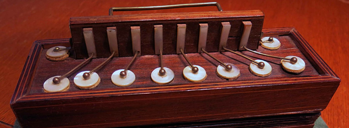 ※图像1:约150年前的手风琴。结构简单,通过风箱控制气流的进出,气流经过簧片便会发出声音。上方8块长方形物体为琴键。