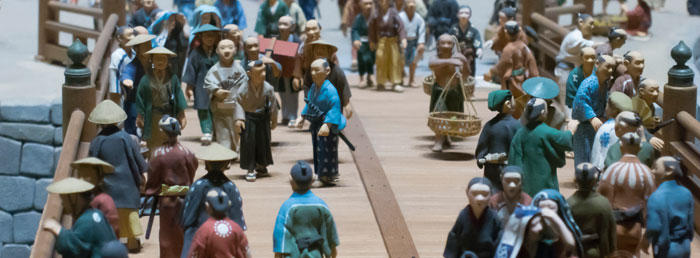 据说江户人口在18世纪初已超出100万人。在歌川广重的《名所江户百景/春之部》中描述了可谓江户繁华街道的日本桥一带,但是人流众多的大街上却见不到任何垃圾。