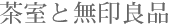 写真の中央に鎮座している器は無印良品の白磁の茶碗。これは日本で生まれた美意識の始原に思いをはせるひとつの「見立て」です。茶室と無印良品の、時を経たコラボレーションとしてご覧ください。