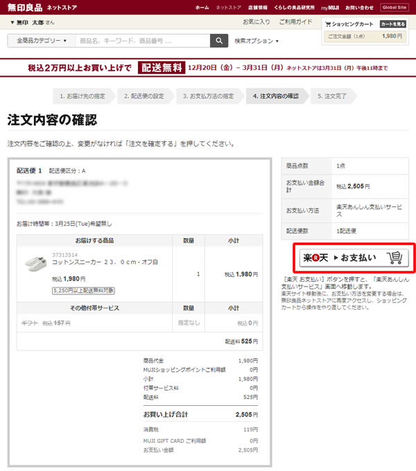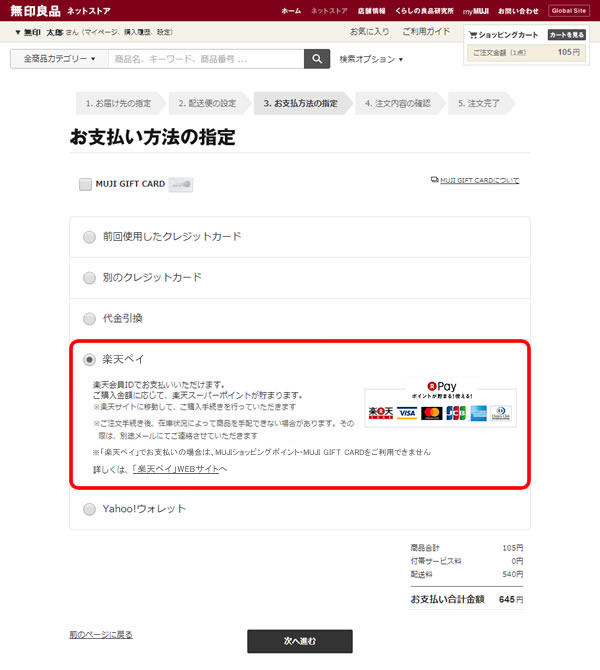 移動後は、楽天サイトの画面案内に従って、お支払い手続きを進めてください。