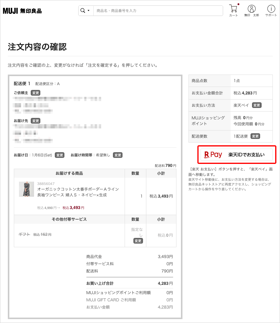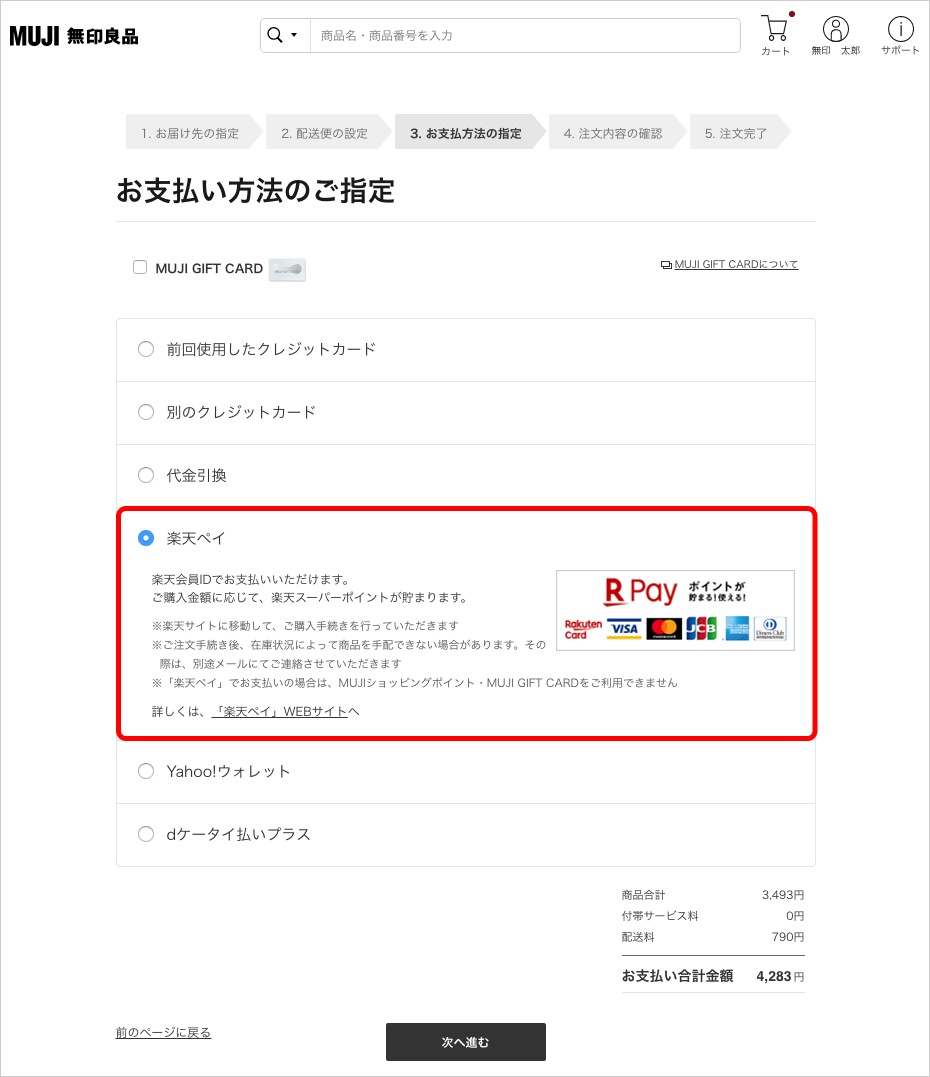 ※ MUJI.netメンバーのマイページでは、表示されません。 - 各キャンペーンの詳細については、楽天株式会社、クレジットカード会社にご確認ください。