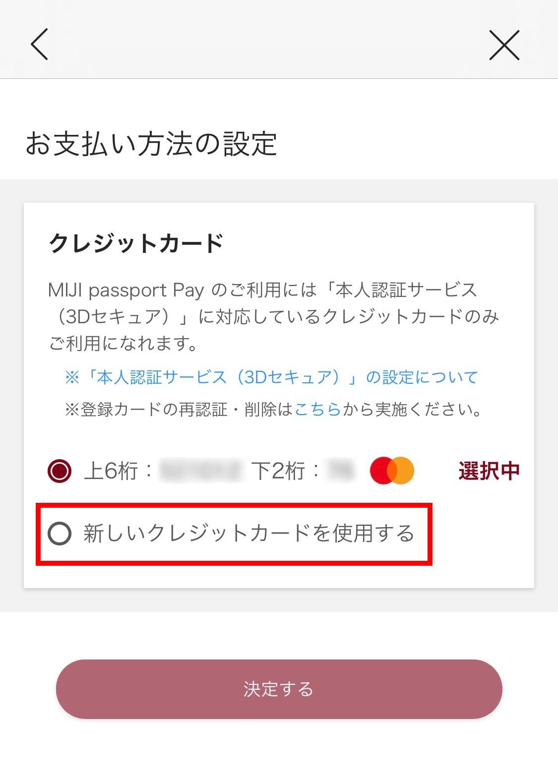 MUJI passport Payのお支払い方法(クレジットカード)の設定・変更・解除について(リダイレクト用)