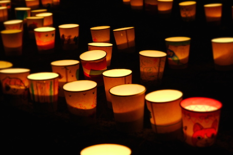 90,000個のキャンドルが公園中に広げられる、一種のアート展示みたいな企画でめっちゃキレイ。お手伝い込みの参加だったんですけど、近所の幼稚園や小中学校の子にお絵描きをお願いしていたみたいで、ちびっ子たくさんで癒されました。