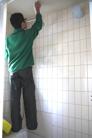 とくに扉の関係上、共有スペースからは丸見え。水まわりということもあって、もっとも掃除の頻度が高い場所です。