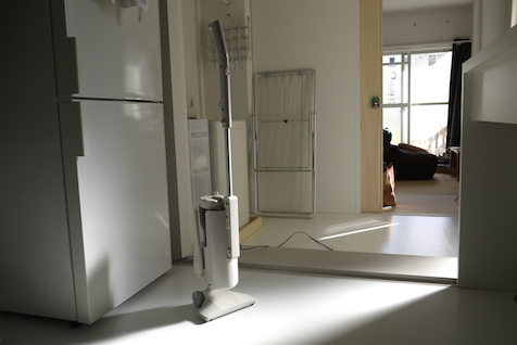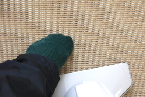 下の階に住む方への配慮もあって、極力ゆっくり掃除機をかけますが、それでも取れないヤツが。そんなときはつま先で軽く引っかいてやると、すんなり剥がれます。どうしても取れなくてしゃがんでつまむ、ということはありませんでした。