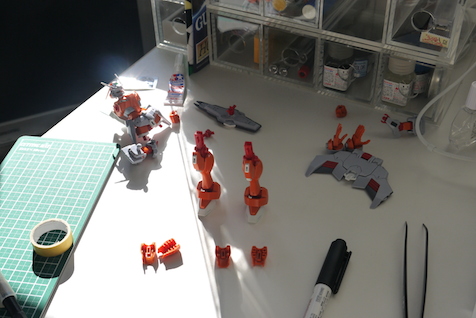メラミン化粧板は耐薬品性も強く、シンナーをこぼしても大丈夫ということで、同じ素材の天板を持つ「デスク天板・メラミン・幅150×奥行60×厚み2cm」は、模型の制作にも一役買ってくれています。