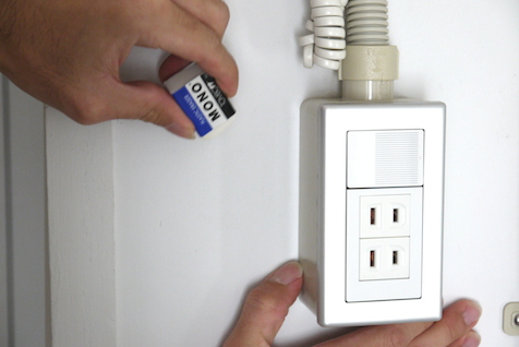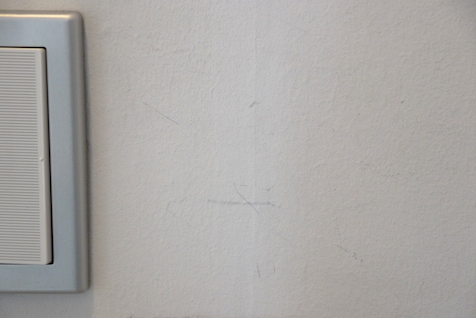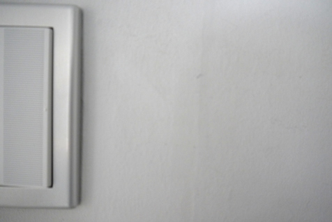 ある程度の硬度があるもので引っかいてしまうと、塗装が変色してしまいます。ホーリーは鍵を持った手で玄関の電灯スイッチを探ってしまうので、周囲に傷がチラホラ。これってば布巾でぬぐった程度ではびくともしません。かといってこの範囲、修正液やテープでは悪目立ちしてしまいます。