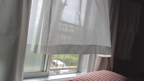 念願のレースカーテンの寸法が短かったのです。窓もミニスカートの季節ですねー、ってなんでやねん!