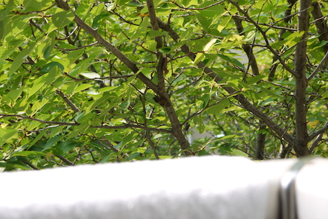 失敗した、と思いきや、慣れてくるとこれはこれで上手い具合に風を通してくれていい感じに機能しています。横になって枕に頭をのせると、ちょうどその高さ分だけカーテンがないのでなんだか不思議な気分になります。これはこれで、あり! でも、外からはどんなかんじに見えているんだろう?(苦笑)