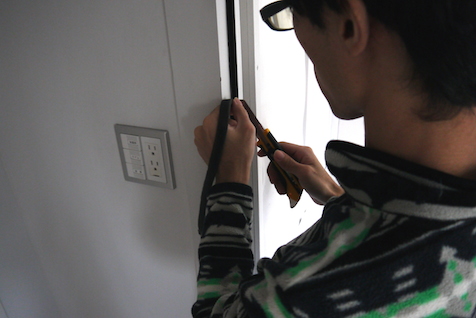 特に100円ショップなどの安いテープは「着けばよかろう」で暴力的な威力のものがあるので注意です。千里シェアルームではこの手法で緩衝剤を貼付けています。賃貸住宅はいずれ返さないといけないので、直接キズがつくのも避けたいところ。