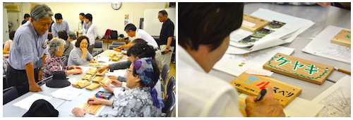 整備された団地の中には、何十種類もの木が植えられています。それを全部ただの木と思って過ごすのはもったいない! プレートを作って、名前の由来やこぼれ話を聞きながら、みんなで団地内をまわりました。