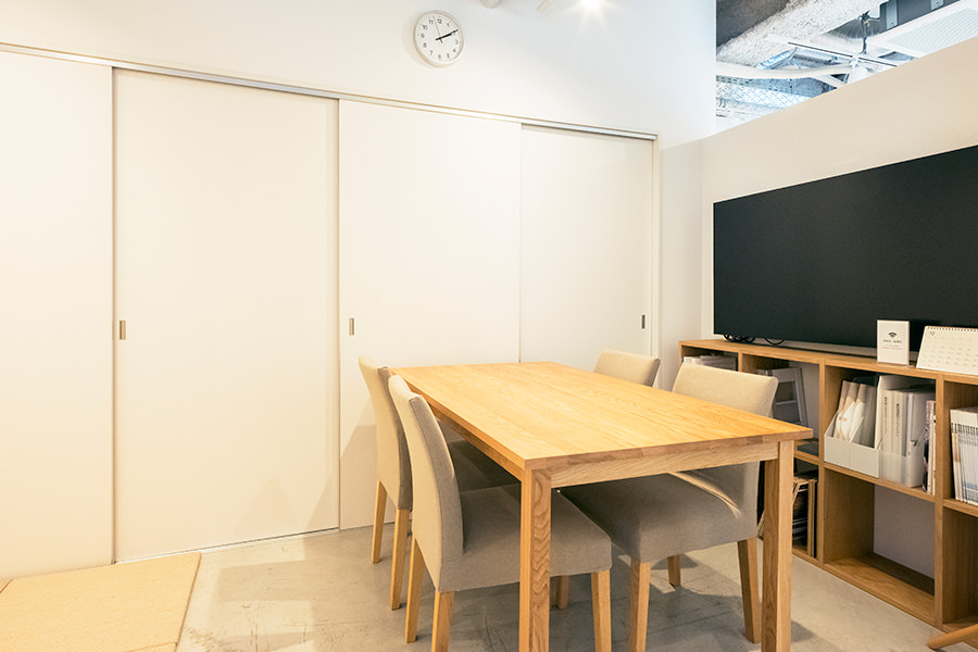 打合せ室。標準仕様やオプション仕様の部材を見ながらご相談することが出来ます。