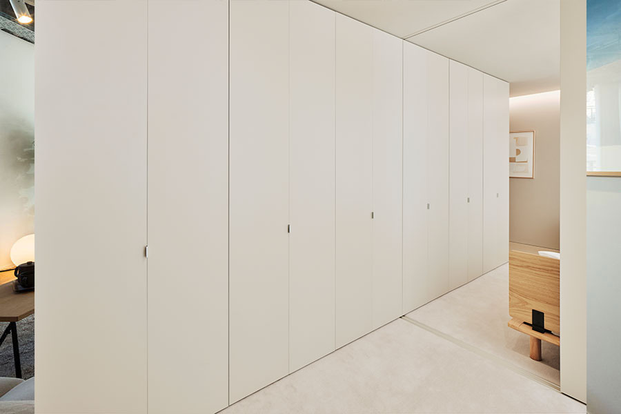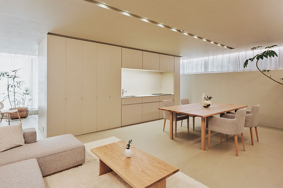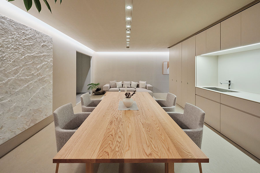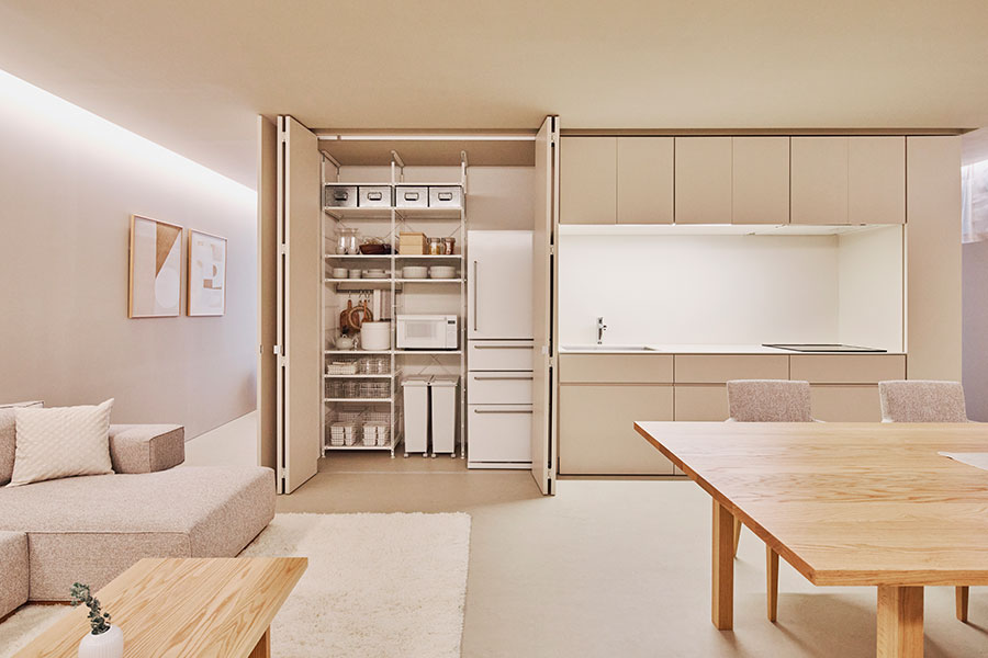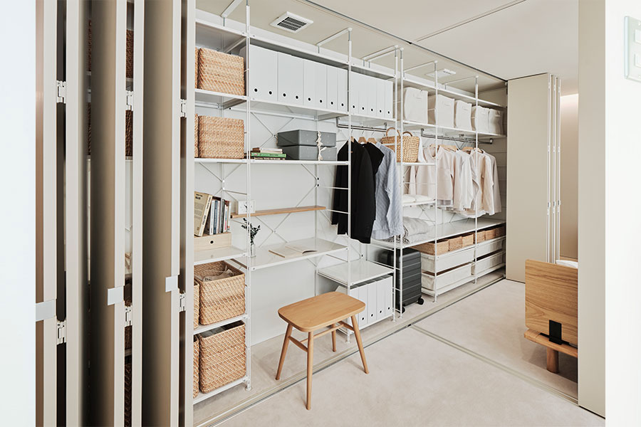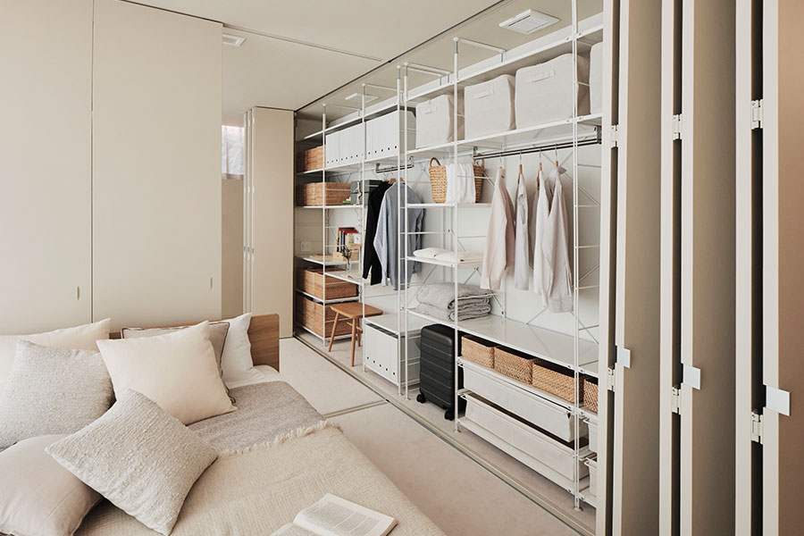 収納を中心に据えた設計により、アートや家具が際立つ空間を創出します。