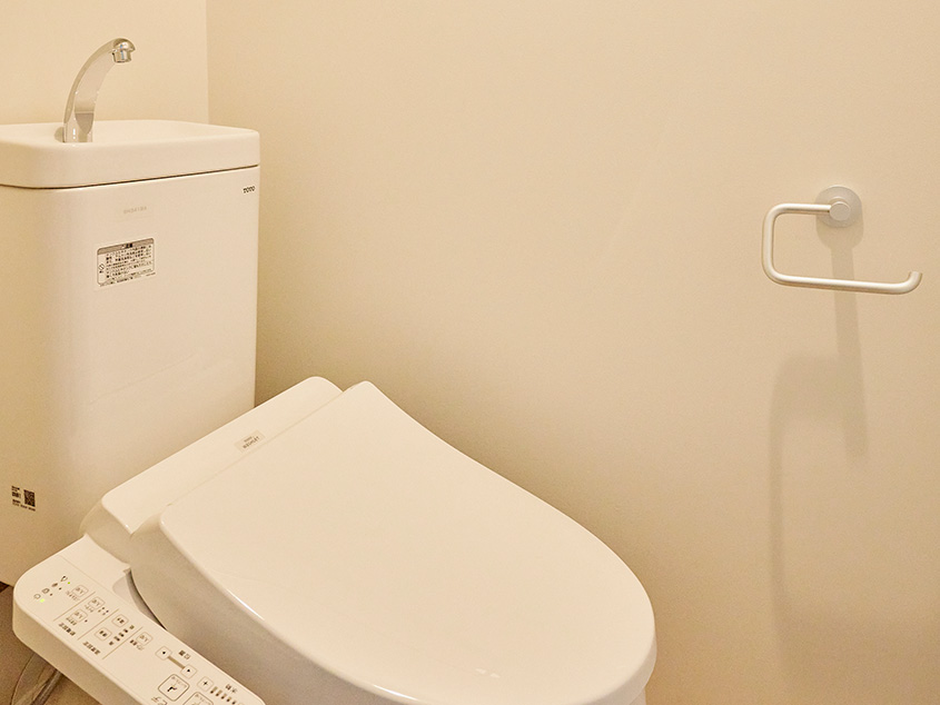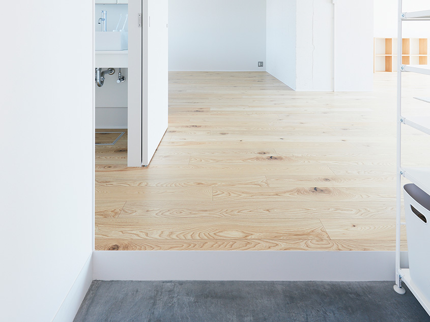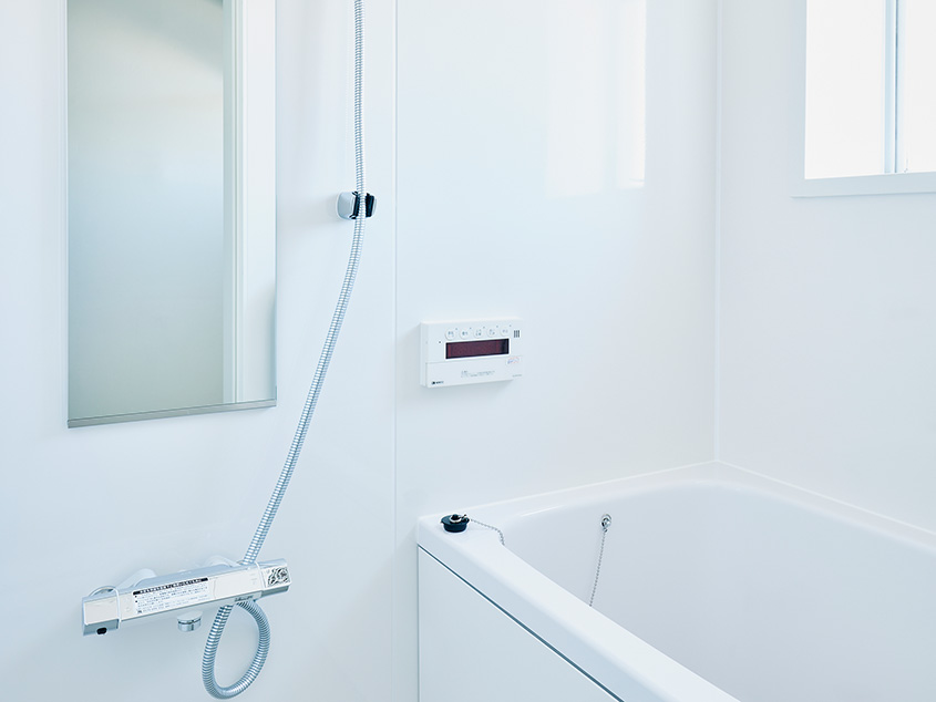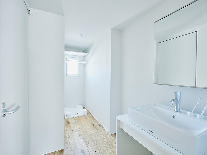 水まわりはもともとコンパクトにまとまっていたので、その良さは活かしながら設備の更新を行っています。トイレ、浴室、洗面室には換気扇がついているので換気もしっかり行うことができます。また、洗面室の入り口は引戸にしているので、換気しやすく、風通しが良い水まわりになっています。