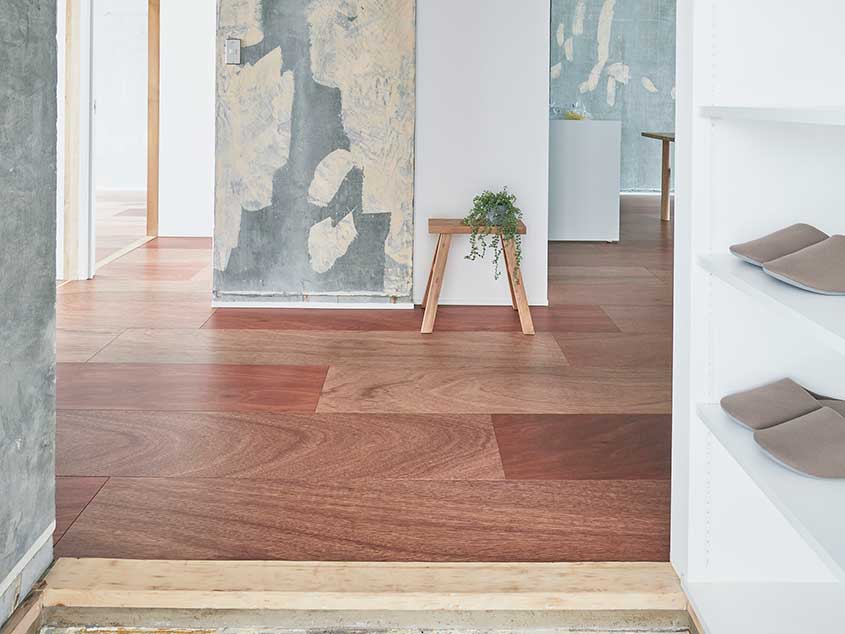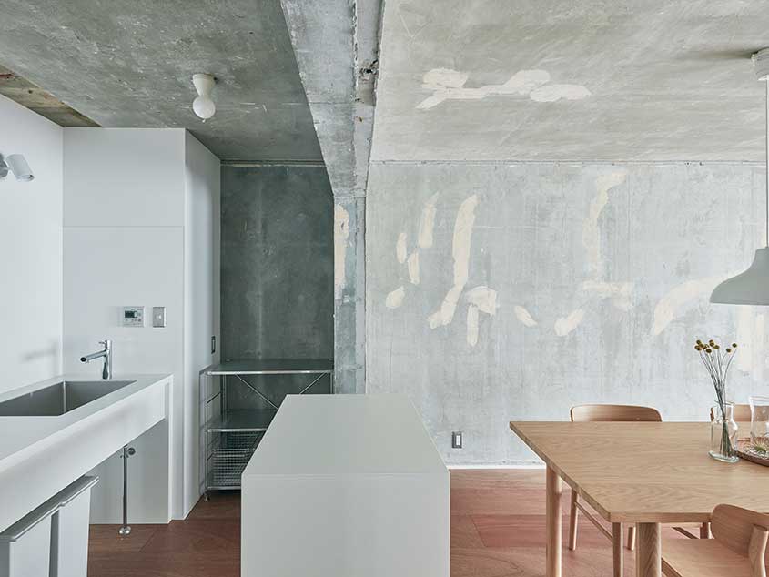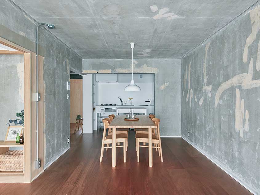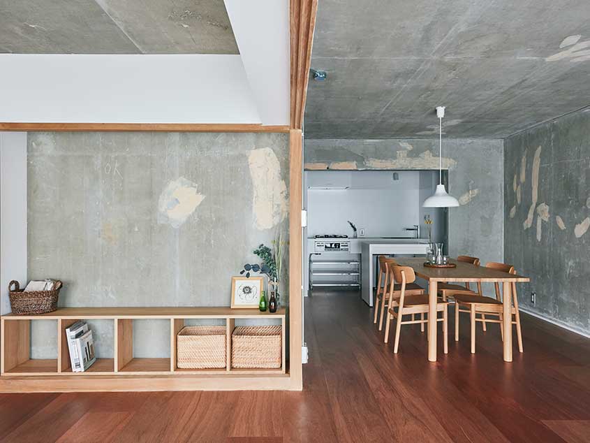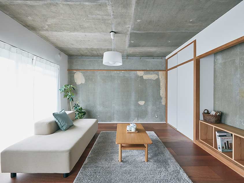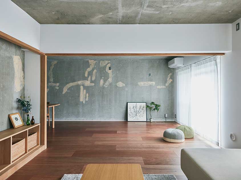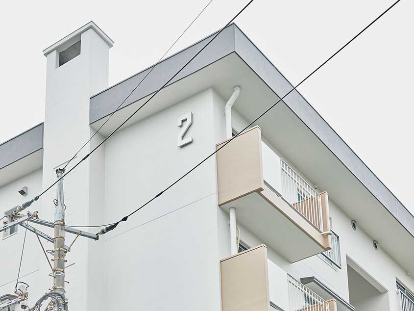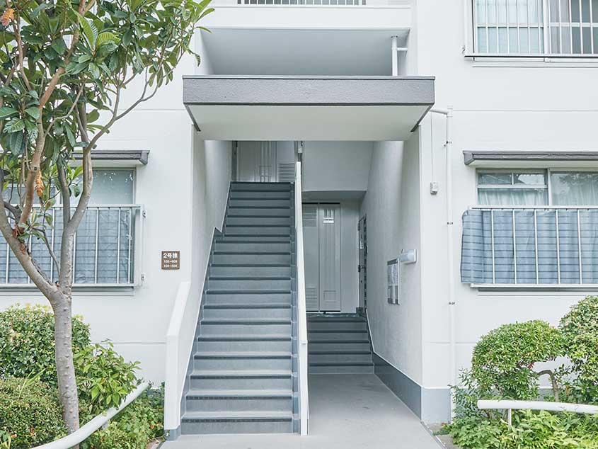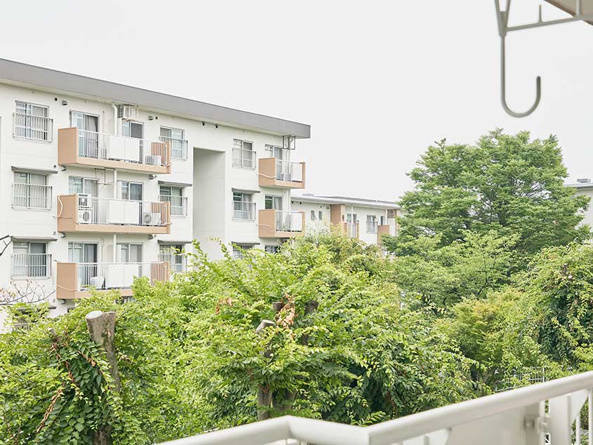 今回リノベーションを行ったのは、グリーンタウン安行東2号棟。エレベータのない5階建ての3階のお部屋です。団地ならではのゆとりある住棟配置のため、光と風が気持ちよく抜けていきます。全てを壊すのではなく、使えるものを残しながらリノベーションをしており、古いものを見なおしながら、設備を更新し、暮らしやすくなるように断熱性能を向上しています。
