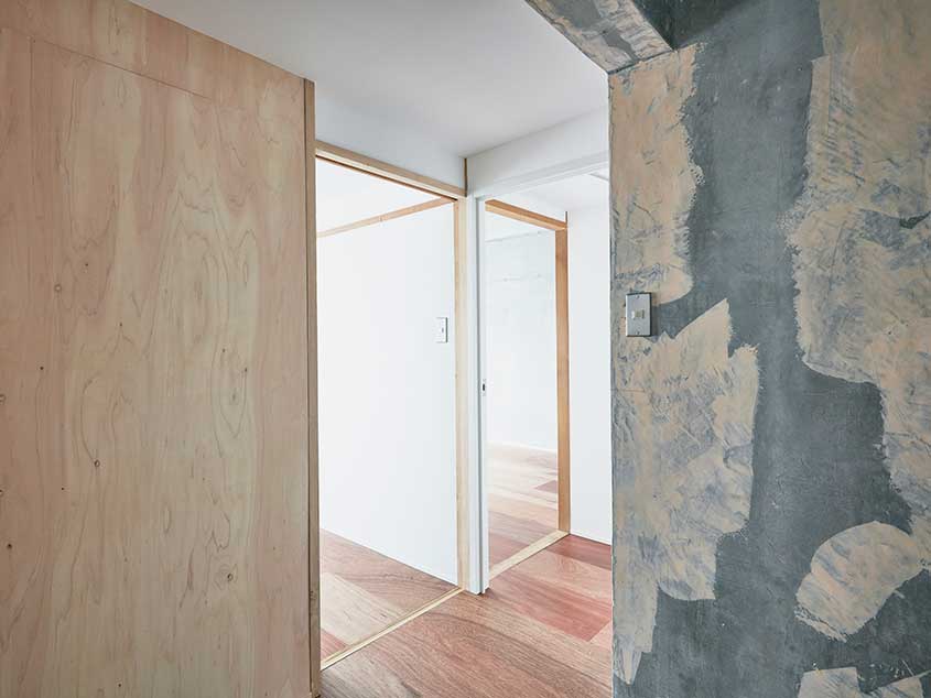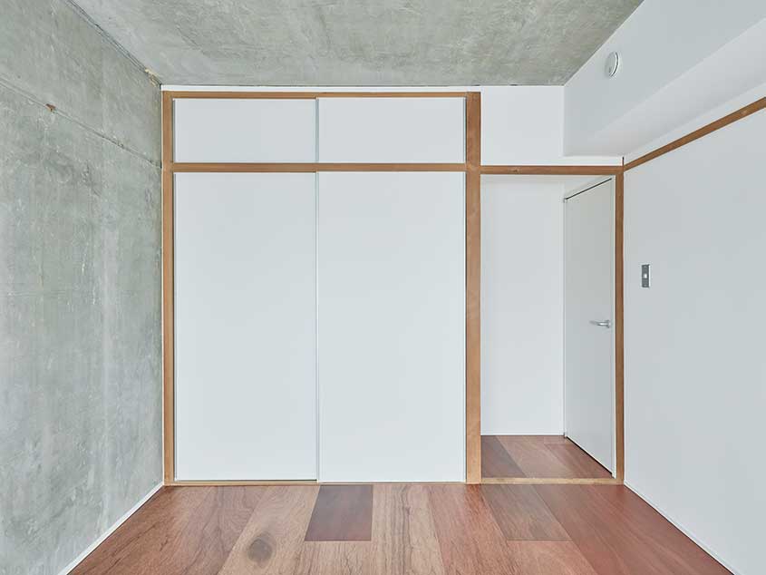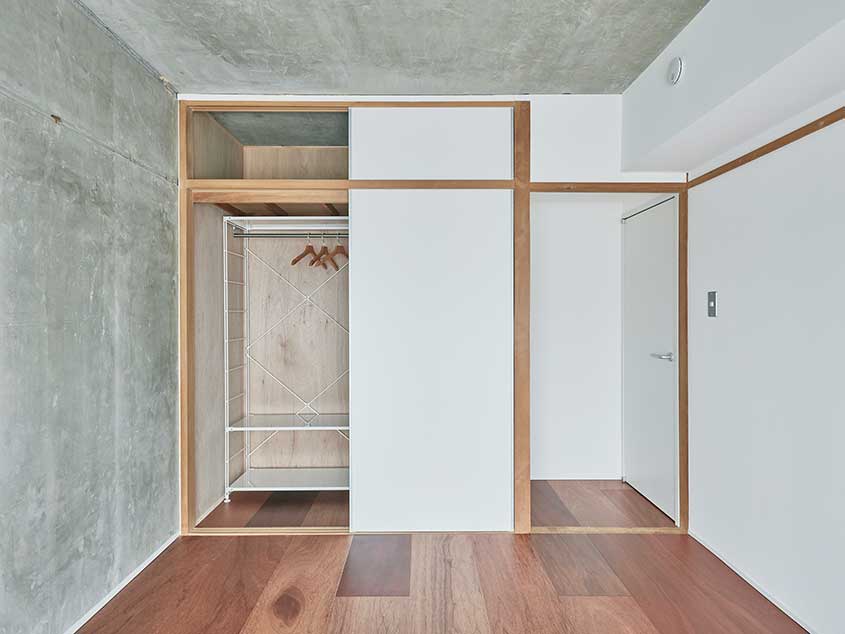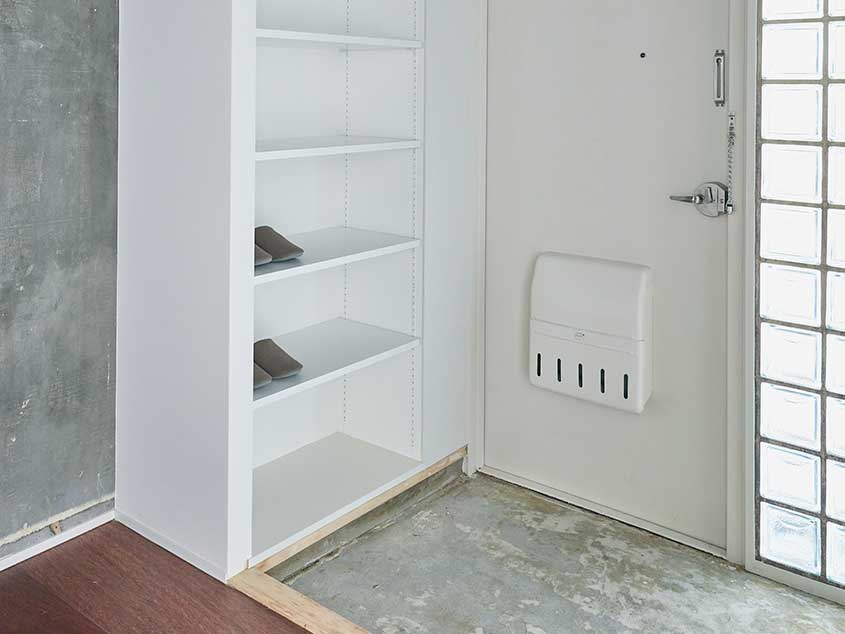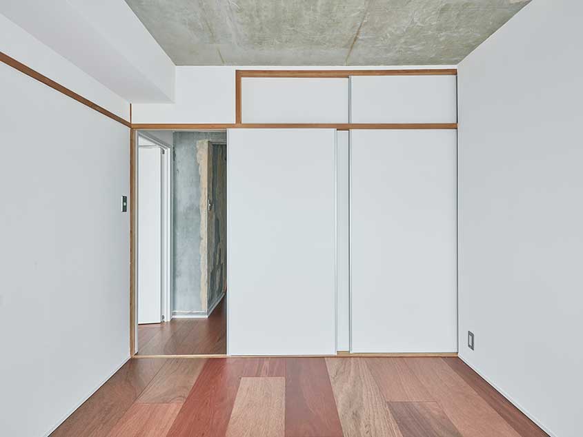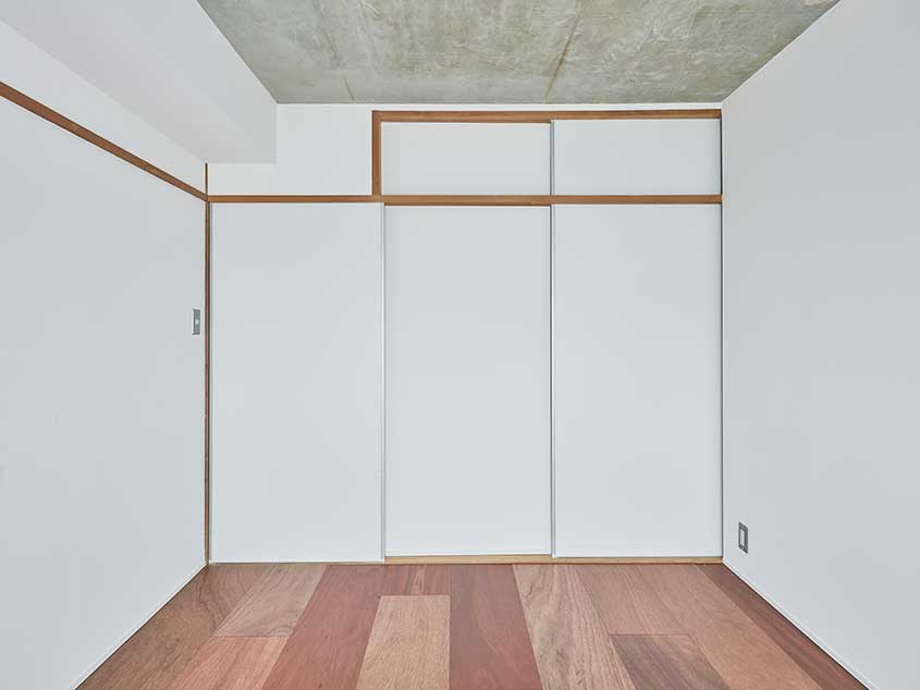 個室は2部屋設けています。もともとあった押入はそのまま収納として生かし、ふすまを段ボールふすまに入れ替えています。