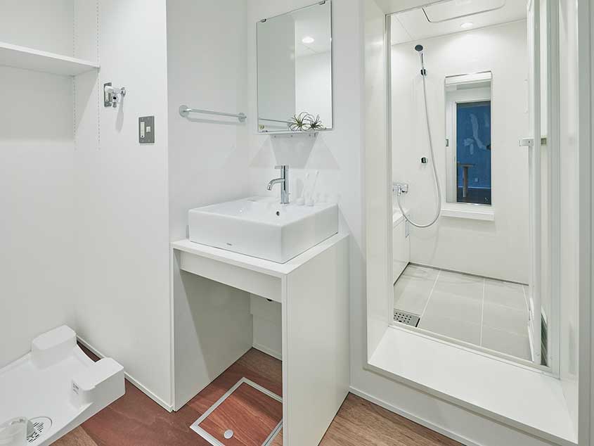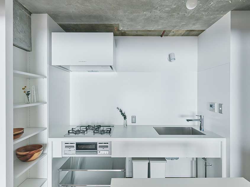 キッチンは「MUJI×UR団地リノベーションプロジェクト」で開発した組み合わせキッチンと組合せテーブルを採用しております。テーブルは作業台として使ったり、カップボード代わりで使ったりと、使う方に合わせご使用いただけます。