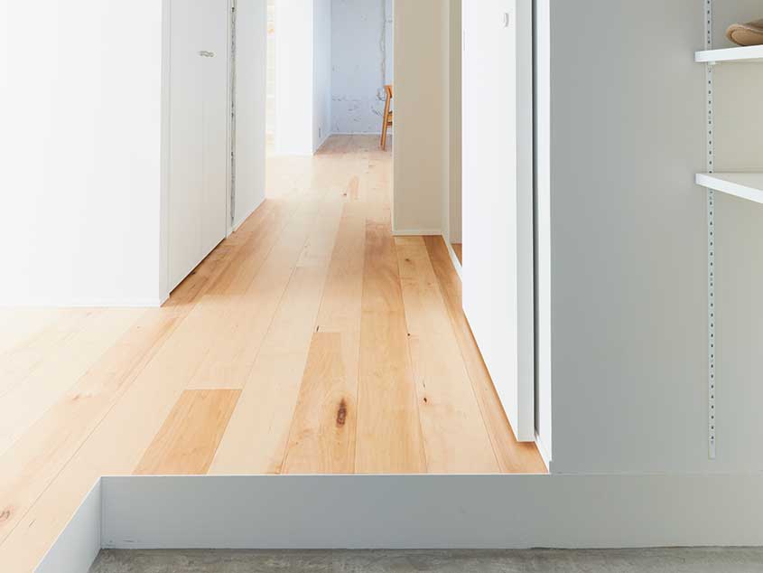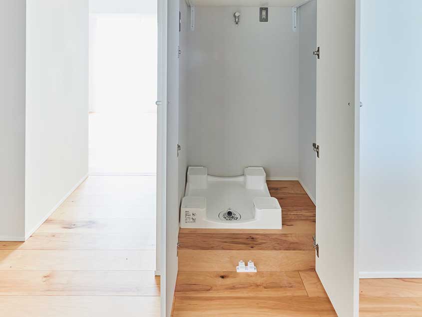 玄関土間、ホールをコンパクトにしてお部屋を広くとれるようプランニングしています。玄関近くに洗面室を設けているので、帰宅してすぐに手を洗ったり、お風呂に入ることができます。