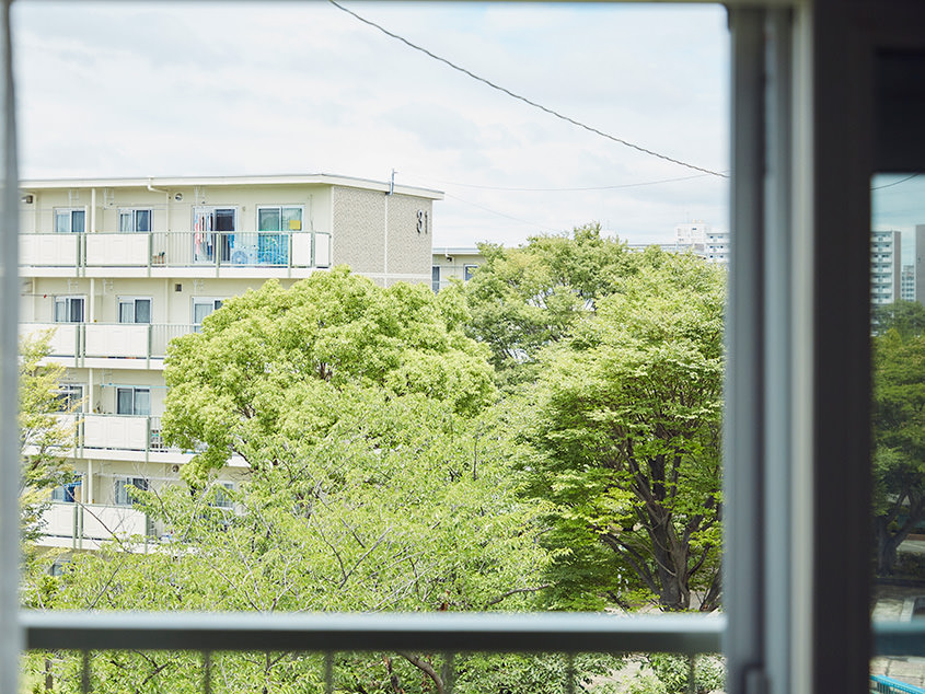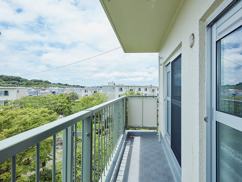 今回リノベーションをおこなったのは、港南台めじろ団地5階のお部屋。近くには無印良品の大型店舗もあり、賑わいがあります。団地内は隅々まで管理が行き届いており、バルコニーや窓辺からは四季折々の木々や草花を望むことができます。