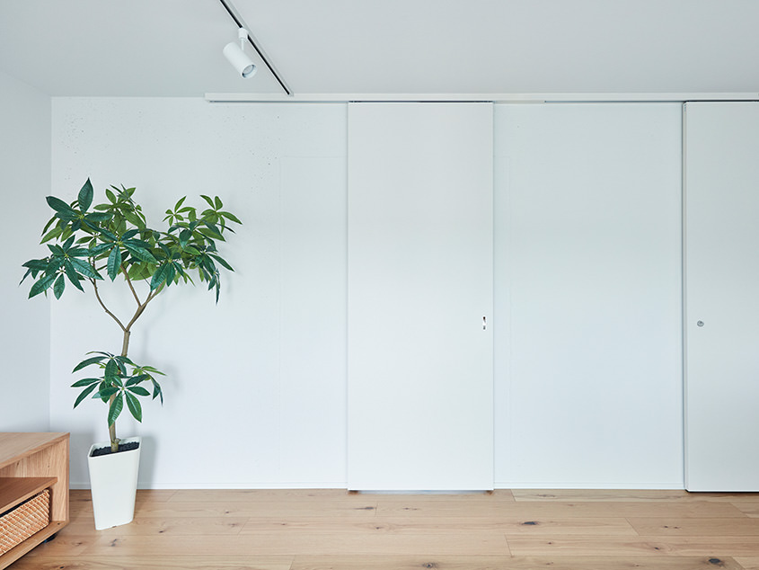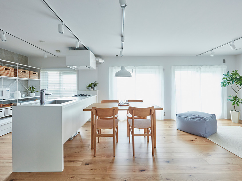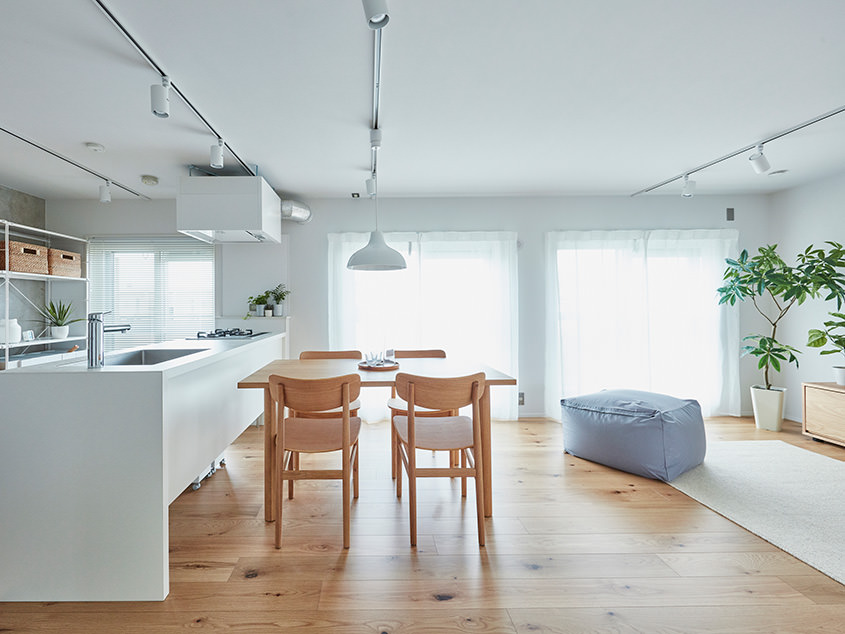 リビングダイニングの一部を家具やカーテンレールなどで仕切ることで、一時的な寝室を設けることができるのでご家族の変化に合わせて住まい続けることができます。場合によってはテレワークスペースとして利用しても良いかもしれません。