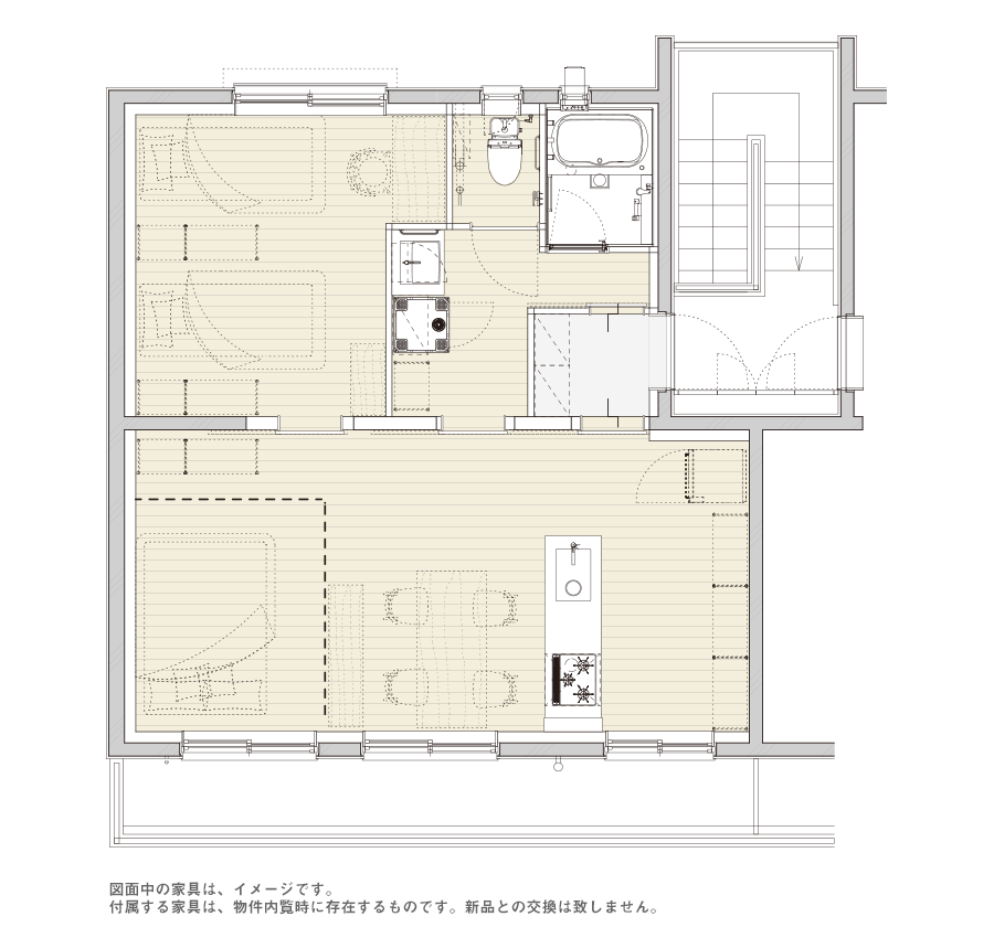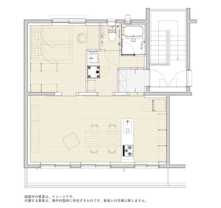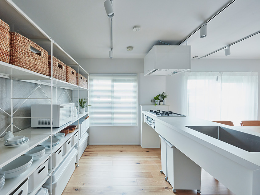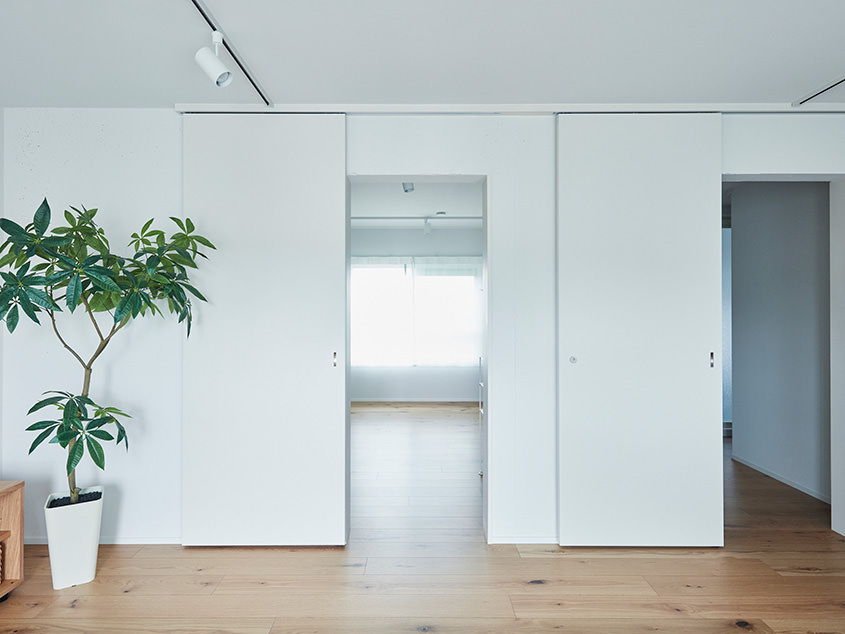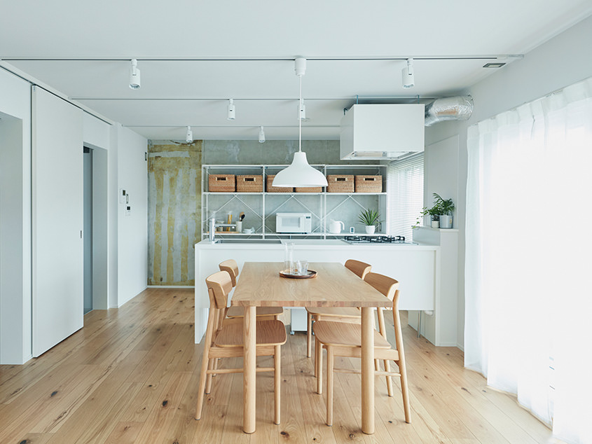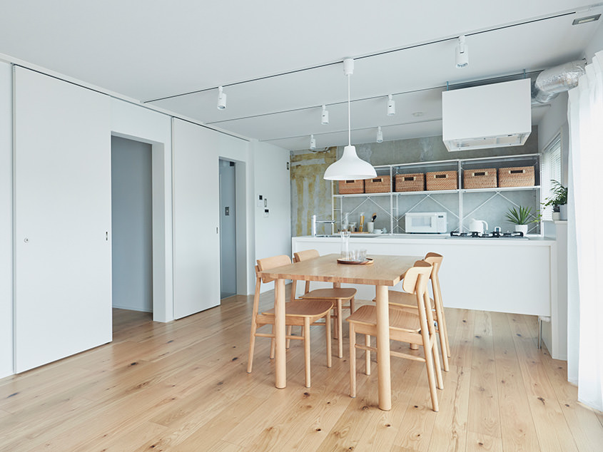 元々の間取りで現代の生活には少し不便な水廻りを中心に間取りを整えました。東西にある窓から風と光が抜ける間取りに変更したので、お部屋全体が明るく柔らかい印象になっています。お風呂とトイレにも窓があるので、換気もしっかり行き届きそうです。外壁面には断熱材を入れ、窓にはインナーサッシを設けることで一般的に寒暖差が激しくなりがちな最上階の住戸の温熱環境を改善しています。