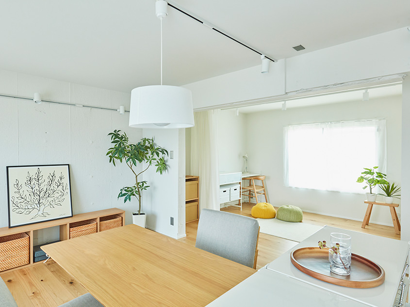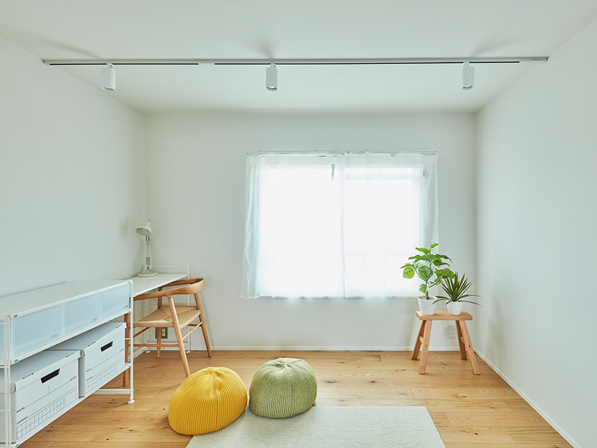 リビングの一部を家具やカーテンレールなどで仕切ることで、お部屋を設けることができるのでご家族の変化に合わせて住まい続けることができます。場合によってはワークスペースとして利用しても良いかもしれません。水廻りや収納など生活に必要なものをコンパクトにまとめたことで生まれた余白は、住まいながらカスタマイズしていくことができます。