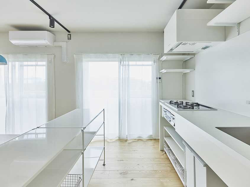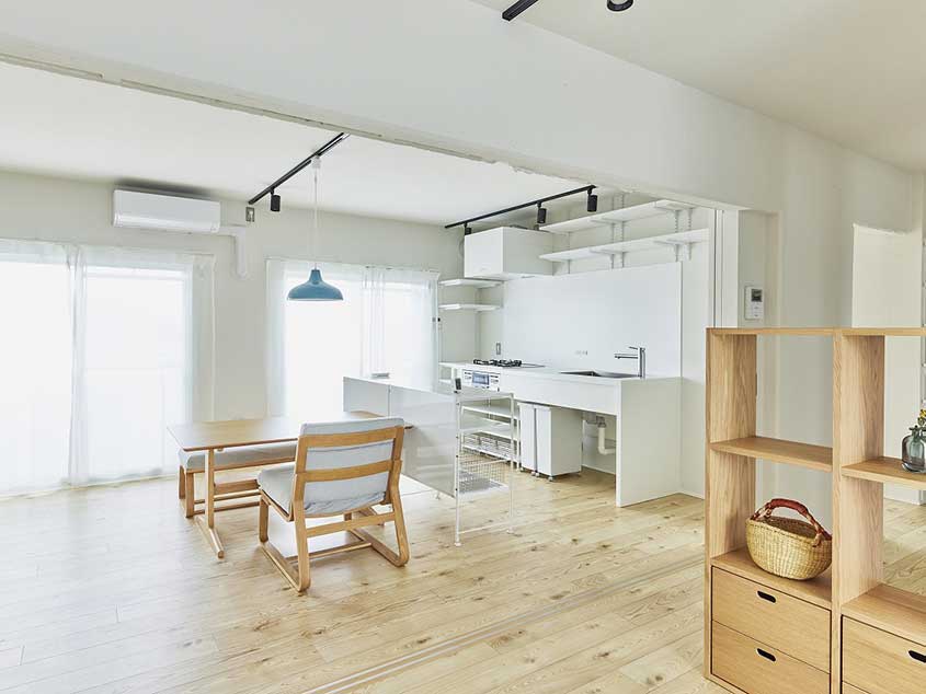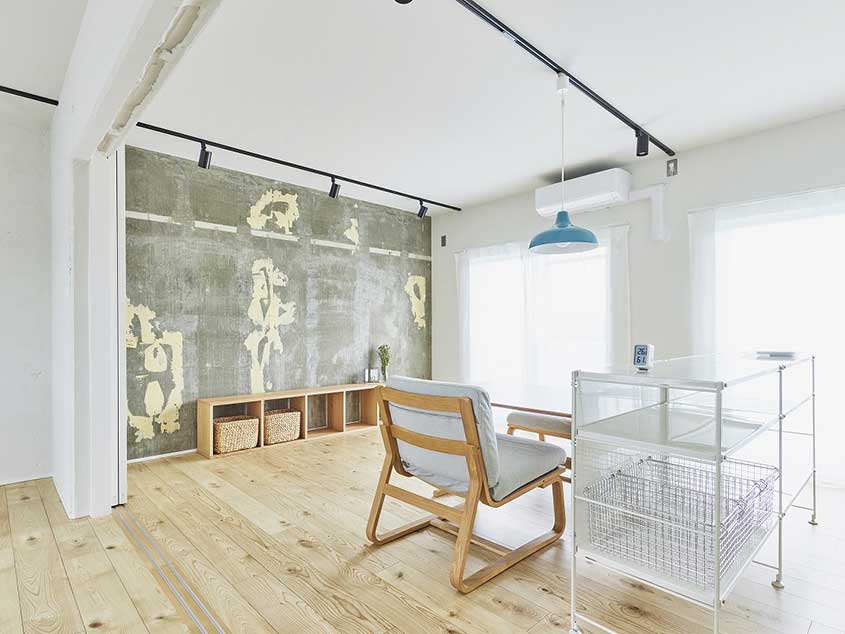 最上階のため、外に面した部分だけでなく天井にも断熱材を入れることで、気になる温熱環境も改善しています。窓も多く風通しも良好、団地の良さを活かした過ごしやすいお部屋になりました。