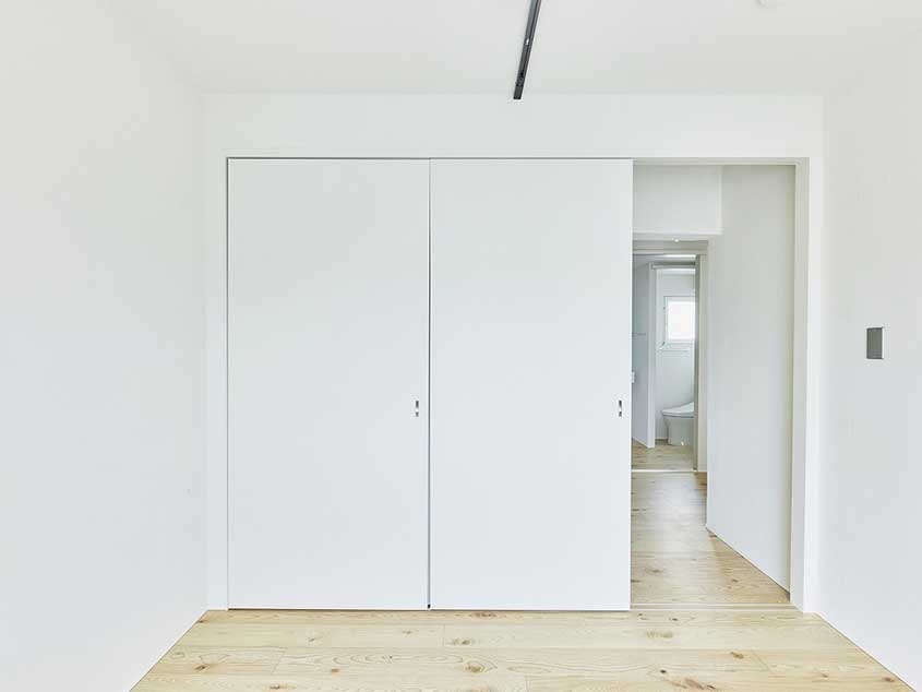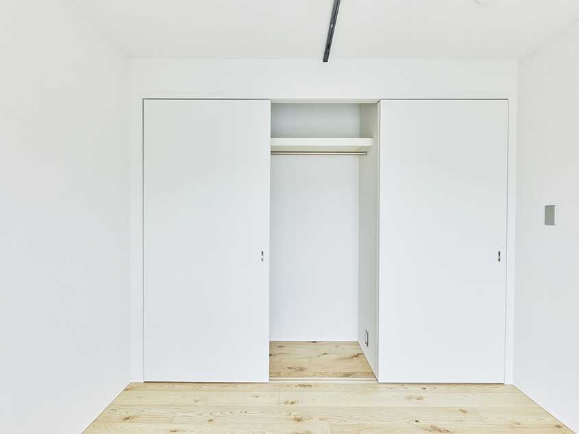 玄関を入って右側には、もうひとつ個室を用意しました。大きなクローゼットを設けているので、寝室や子ども部屋にもおすすめです。