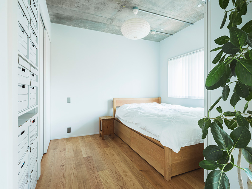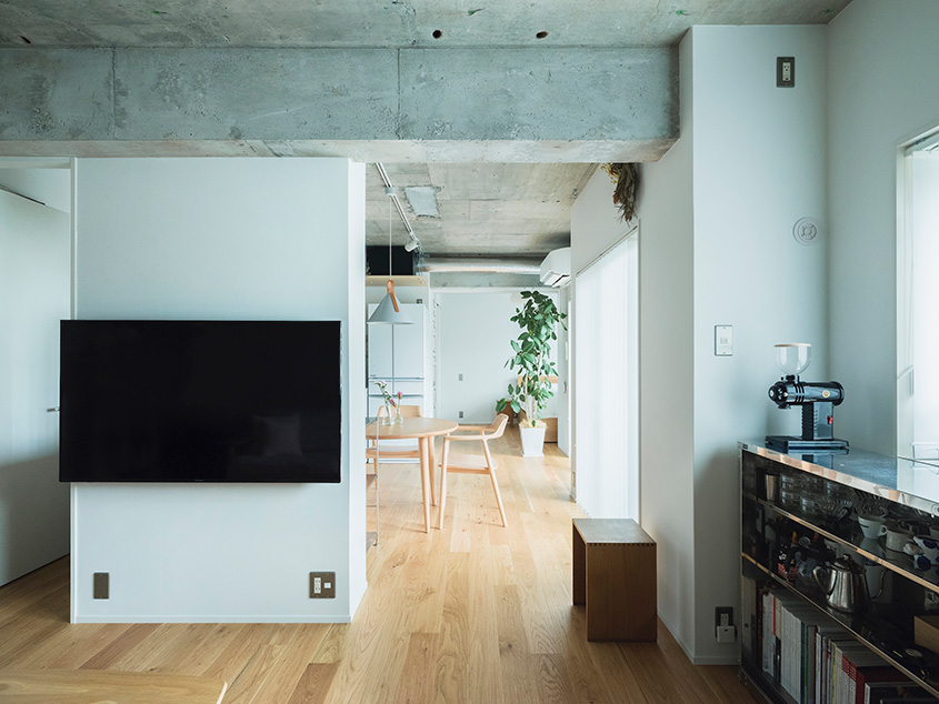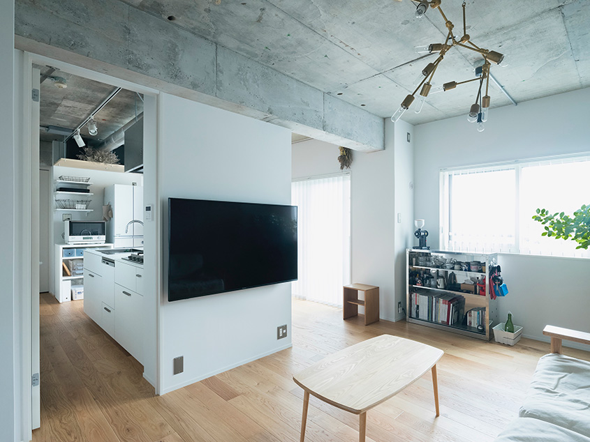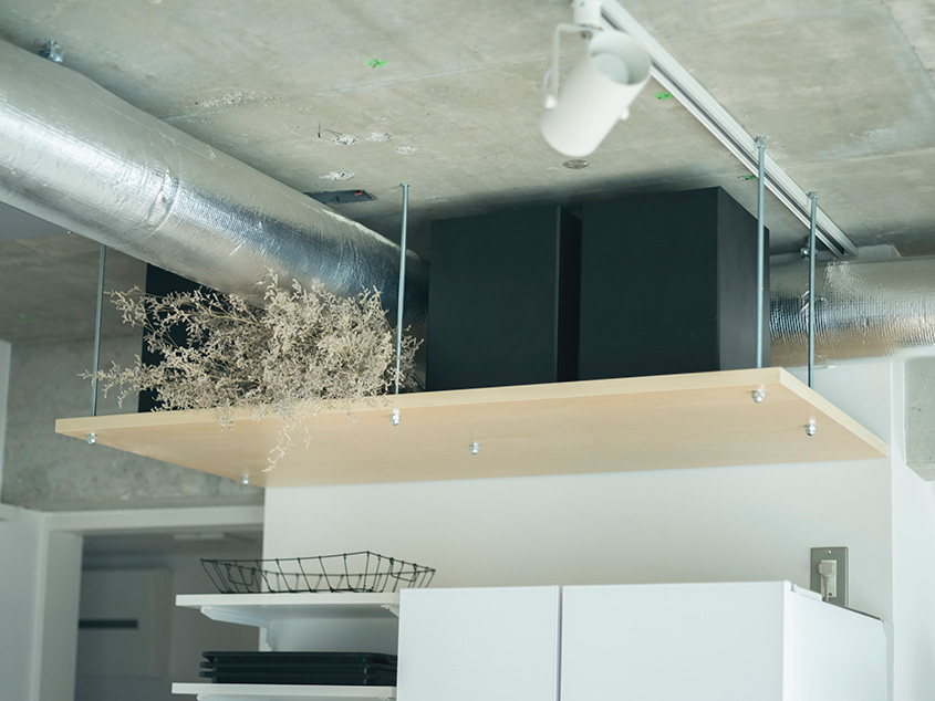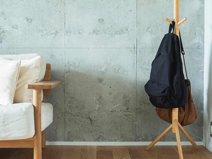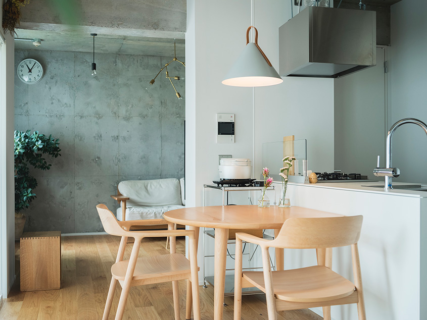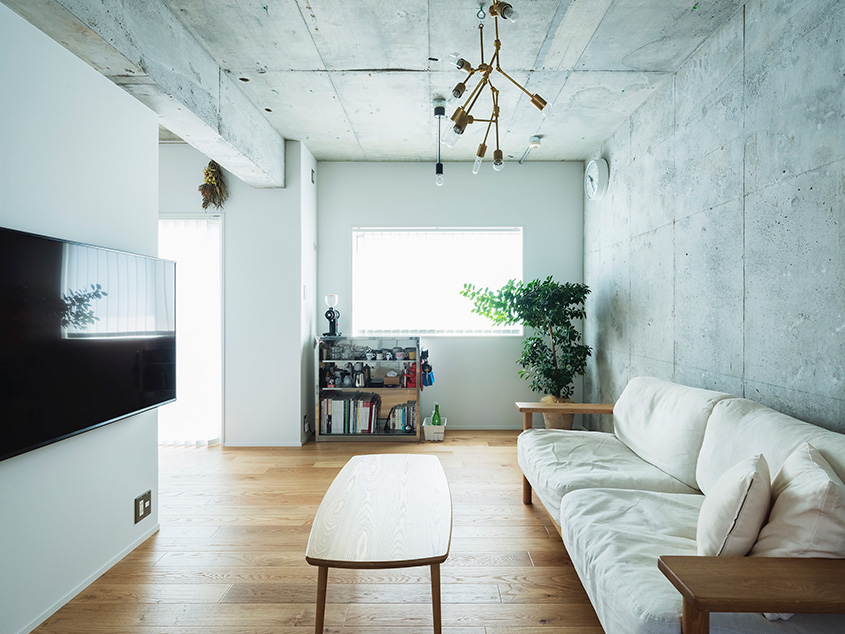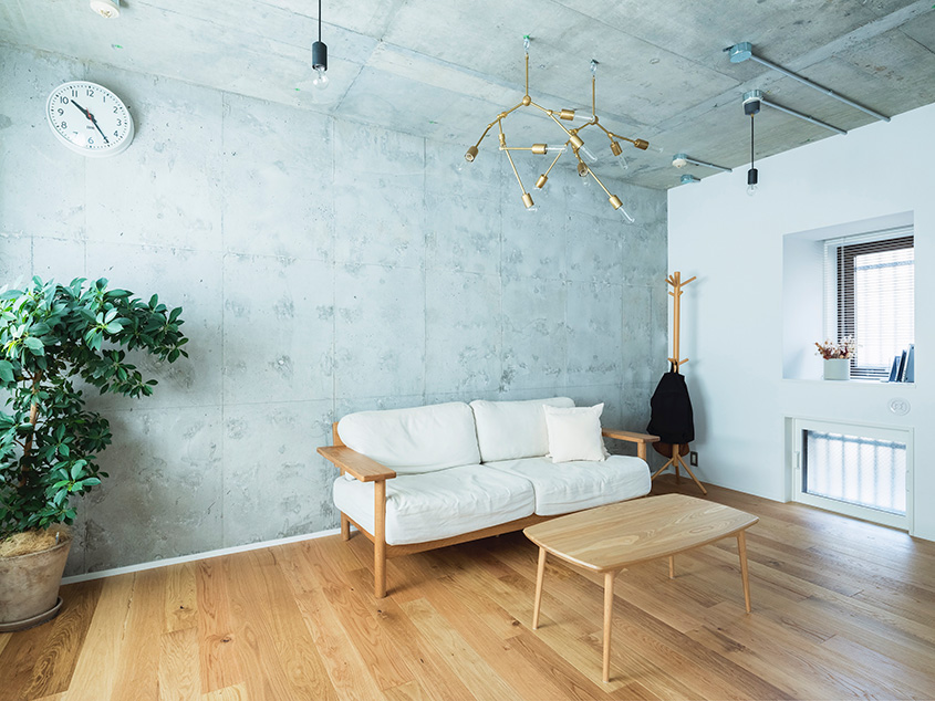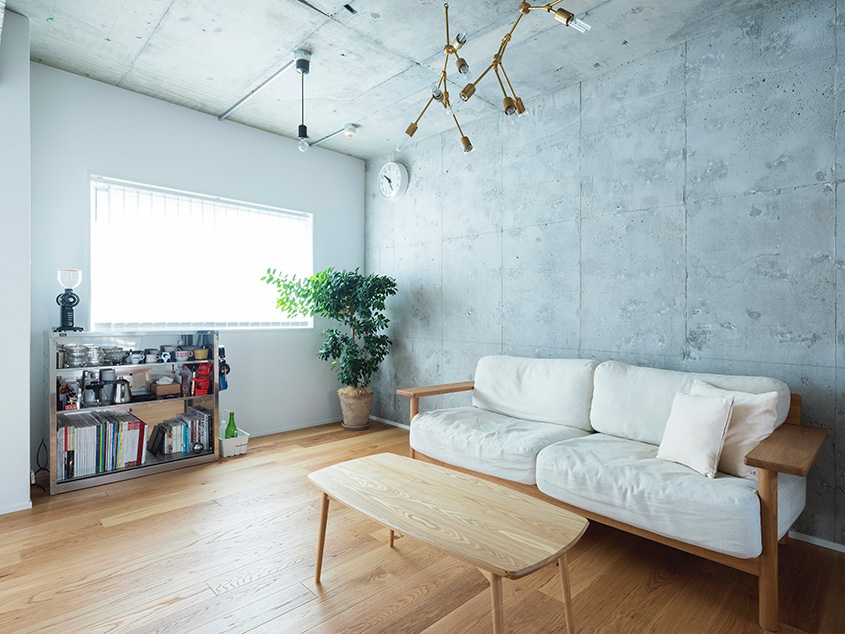 こちらのお部屋は、壁面や天井にコンクリートの駆体を残した内装が印象的です。