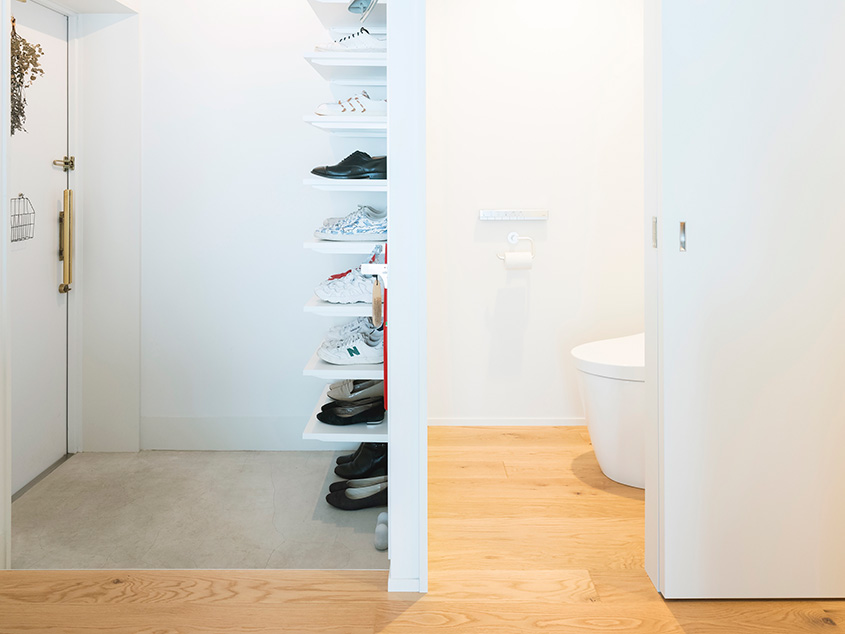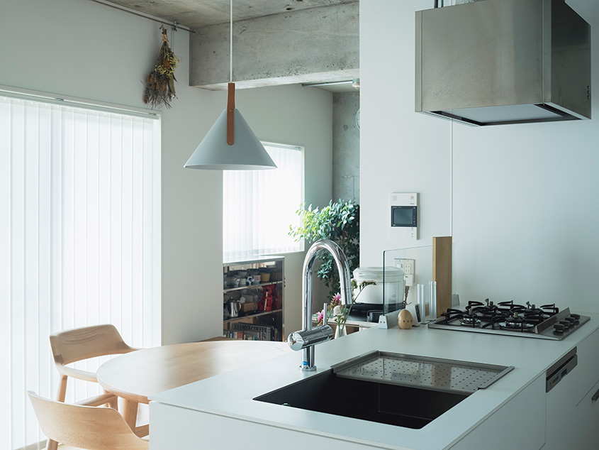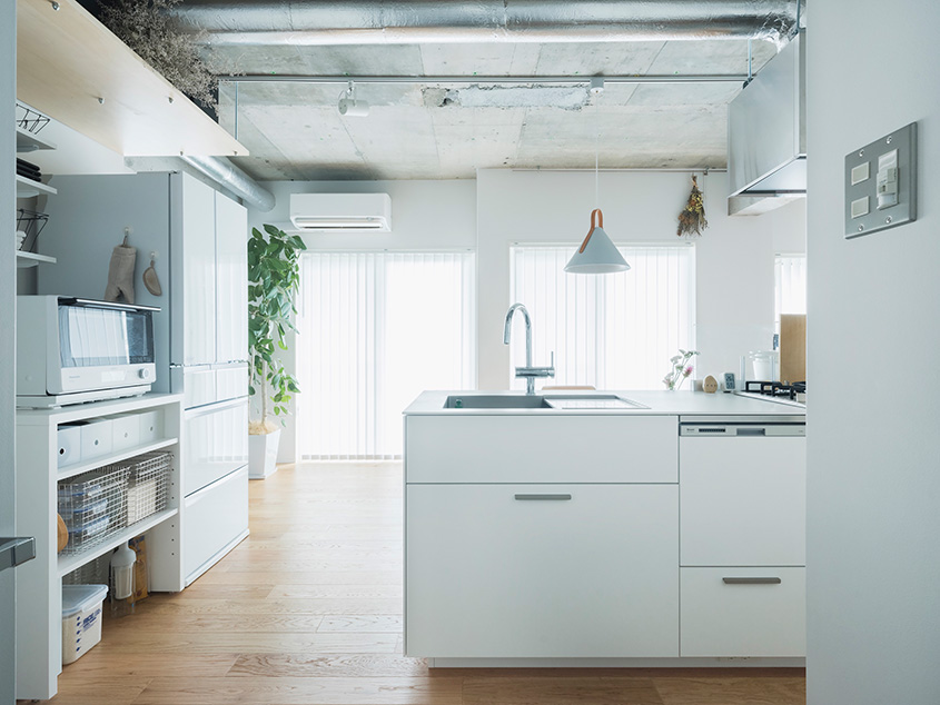 玄関を入ってすぐキッチンがある間取りとなっていて、家事動線がすっきりとしています。